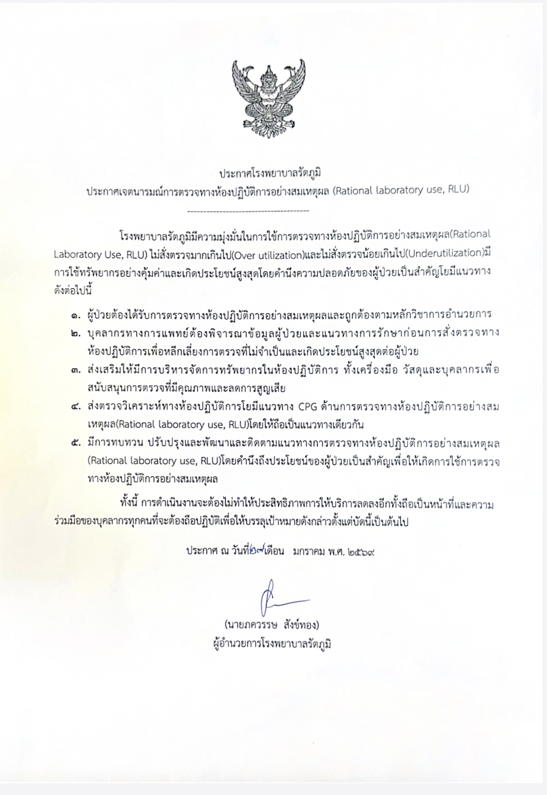 โรงพยาบาลรัตภูมิ องค์กรหลักด้านสุขภาพที่มีมาตรฐานบูรณาการแบบมีส่วนร่วมเพื่อประชาชนสุขภาพดี